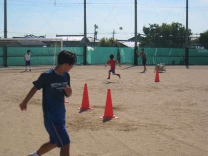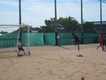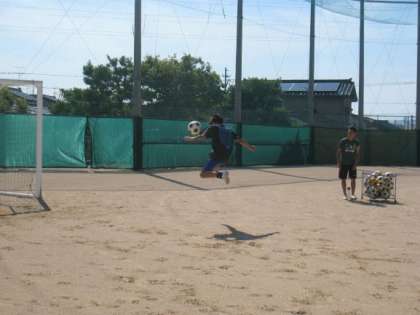 午後からサッカー部が練習しています。浮き球を頭やボレーでゴールに流しこんでいました。