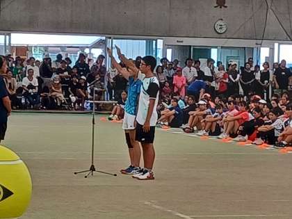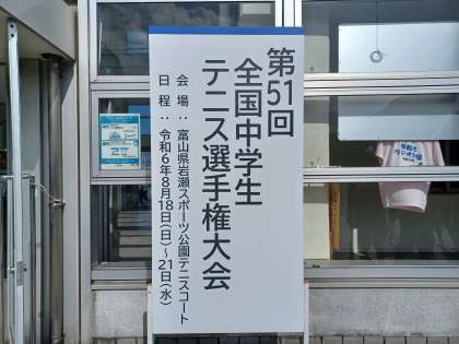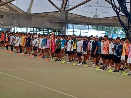 岩瀬スポーツ公園にて、全国中学生テニス選手権大会の開会式開催。本校の3年生部員が選手宣誓を行いました。緊張しながらも堂々とした宣誓でした。試合は明日18日から21日まで。応援よろしくお願いします。