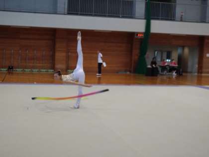 長野市ホワイトリングにて開催されている全国中学校体育大会新体操競技の個人演技が行われました。フープでは自分らしい演技をすることができ、18位/47人中でした。リボンでは少しミスがあり悔いの残る演技でしたが、総合26位でした。北信越ブロックの皆さんからたくさんの大きな声援をいただきました。音楽係として同行してくれた生徒も様々な場面で気を配り、精一杯サポートしてくれたおかげで安心して演技ができました。貴重な経験ができました。応援ありがとうございました