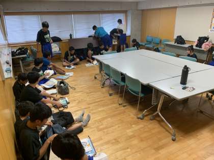 今日からお盆明けとなり、部活動が再開しました。練習後はクーラーの効いた涼しい部屋でクールダウンしてから下校しています。(写真は陸上競技部)