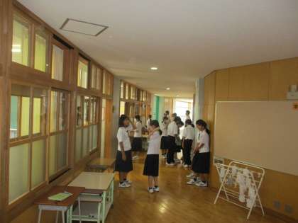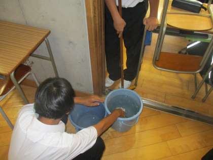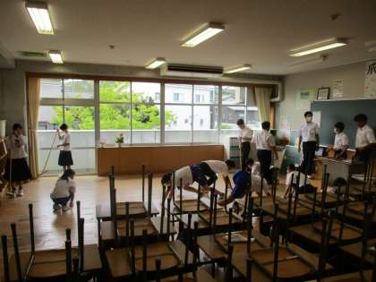 登校して、級友と会話を楽しんだ後 清掃活動を始めました。