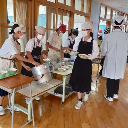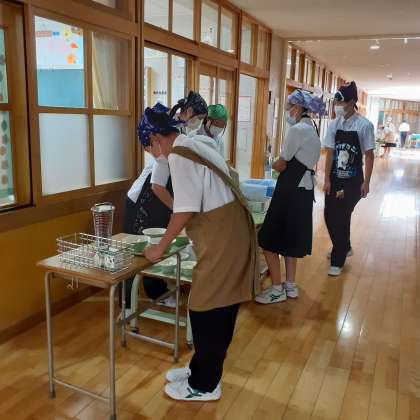 8月28日(水)。今日から2学期の給食です。給食当番が要領よく配膳しました。