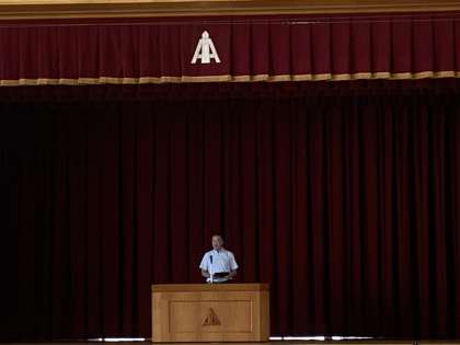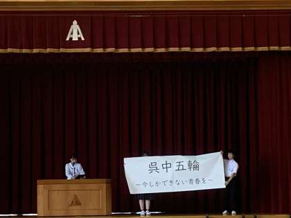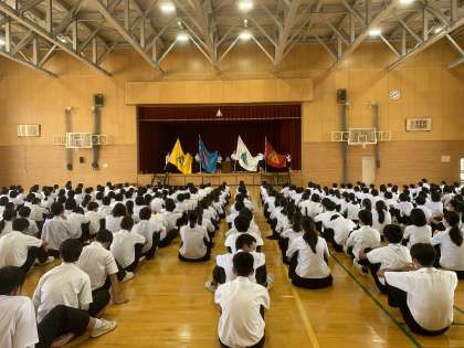 本日の5限目に体育大会結団式を行いました。体育大会のスローガンが発表され、各団の団旗が団長に手渡されました。校長先生から、一人一人の本気を見せてほしい、そして全校の本気で大きな感動を生んでほしいと激励の言葉がありました。