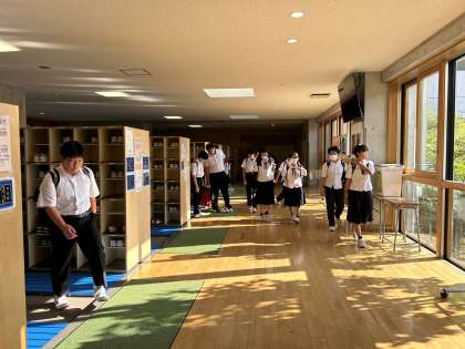 朝方は涼しかったのですが、もう暑いです。汗を流しながら登校する生徒も多くいます。水分補給用の飲料や汗拭きタオル等を忘れないようにしましょう。