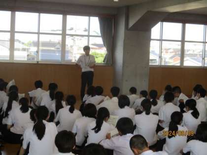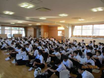 合唱コンクールリーダー研修会が開かれました。合唱コンクールに向けた準備や練習に関する規約、審査項目などの説明がありました。