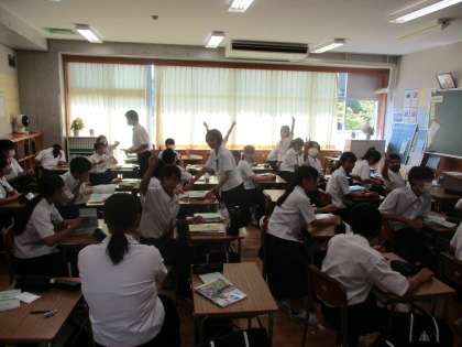 生徒たちは次の授業に遅れないように3分前着席を心がけています