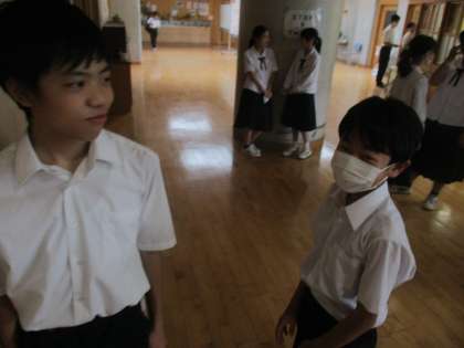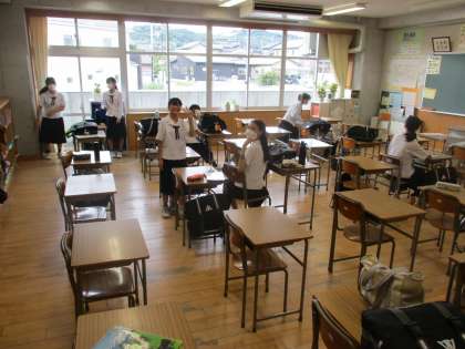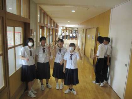 朝の会の準備できた生徒たちは、廊下で楽しいおしゃべりの時間です