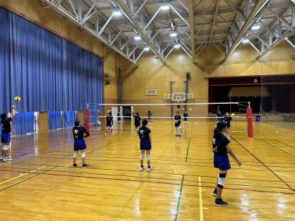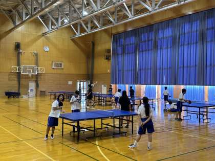 体育館では、卓球部とバレーボール部が朝から活動しています。