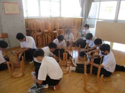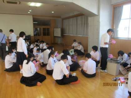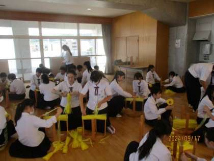 体育大会に向けて、ぽんぽんを一生懸命作成しています。