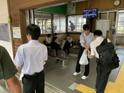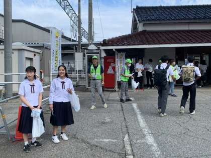 今朝、本校ボランティア生徒7名が呉羽駅前で、地域の防犯協会の方と一緒にカギかけ防犯キャンペーンを行いました。自転車を駐輪する際は、必ずカギをかけましょう!