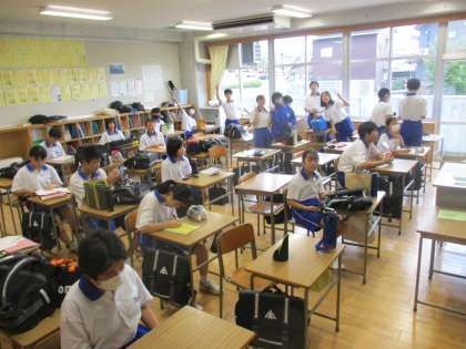 朝の様子です これから朝学活です 上 4組 下 5組