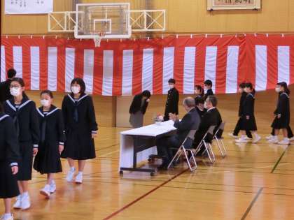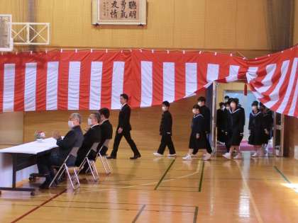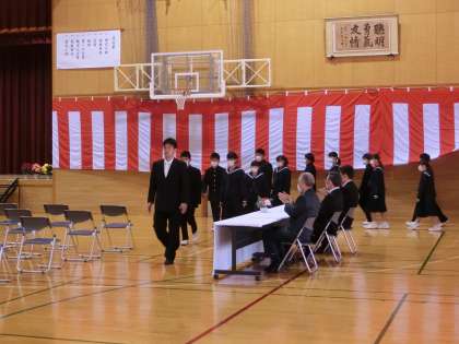 在校生は不在となりましたが、親御さん、ご来賓、教職員が拍手とともに見守る中、堂々と入場しました。