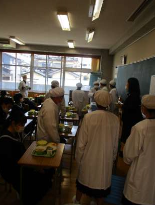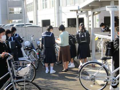 給食の様子と放課後の自転車点検です。