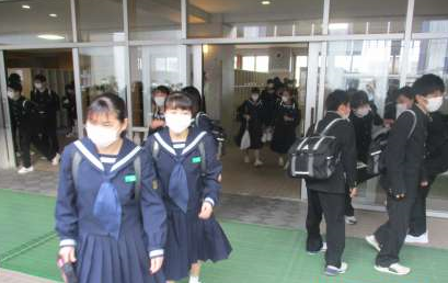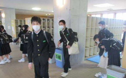 生徒玄関では、友達とのしばしの別れを悲しんでいる生徒やついつい話し込んでしまう生徒等、下校の時間を思い思いに過ごしていました。