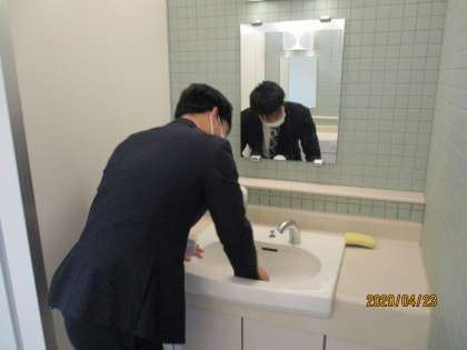 臨時休業期間が終わったとき、皆さんが気持ちよく学習できるように、教職員で清掃をおこなっています。