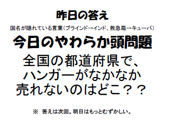 学習課題はもう手元に届いたでしょうか。学校からの課題に取り組んで、ひと息つくついでに、今日の問題にもチャレンジしてくださいね。