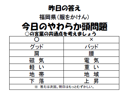 学習の合間の気分転換に今日の問題にも取り組んでみましょう。
