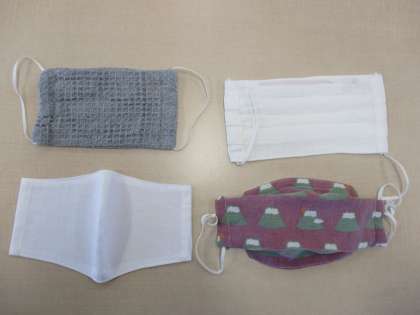 1,2年生の皆さん、休業中の課題「マイ・マスクを作ってもみよう!」に取り組んでみましたか? 写真は、松浦先生が製作したマスクたちです。「マスク」と一言でいっても、布の素材やデザイン、好み等で様々な個性が出るものです。これからの休業期間を使って、ぜひ自分に合ったオリジナルマスクを製作してみましょう。マスク製作レポートの記入も忘れずに。