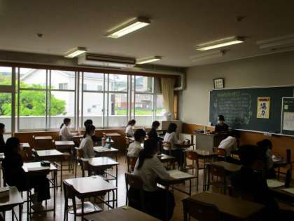 久しぶりに半分ずつではありますが、再会でき、マスク越しに笑顔がこぼれていました。教室では、これからの学校生活の送り方を静かに、聞き入っていました。課題を提出したり、心のアンケートを記入したりとあっという間の学活です。