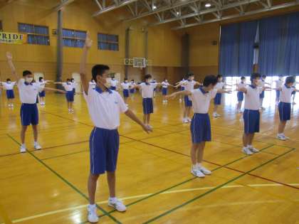 一人一人間隔をあけて並び、集団行動の復習をしています。1年生からずっと行っているのでもう完璧です!