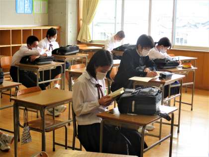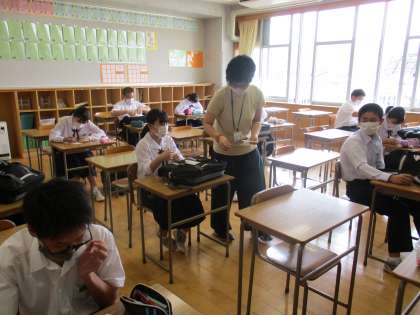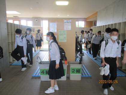 3時間の授業が終わり生徒に感想を聞くと「授業ができてよかった」「静かなので困った」「みんなと一緒に授業がしたい」等の言葉が聞かれました。明日は、偶数番号の生徒の登校となり、今日と同じ授業を行います。早くクラスの全員で授業ができるといいですね!