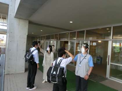 昨日登校しなかった出席番号偶数の皆さんの登校日です。生徒玄関での検温もスムーズに進みました。みんな各ご家庭での健康チェックをしっかりして登校してくれいます。ご家庭でのご協力ありがとうございます。