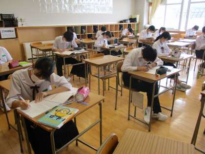 写真を見るとまるで授業中のような感じがしますが、授業前の休み時間の様子です。