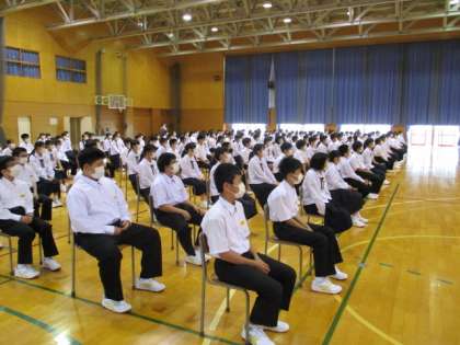 生徒たちは、先輩の凜々しい姿を食い入るように見ていました。まだ活動前のため、実際の様子を直接見る機会はありませんが、第一段階として希望アンケート調査を行いました。