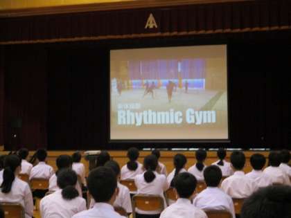 2限目に体育館で各部の先輩が作成した部活動紹介動画を見たり説明を聞いたりしました。