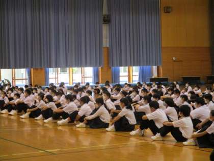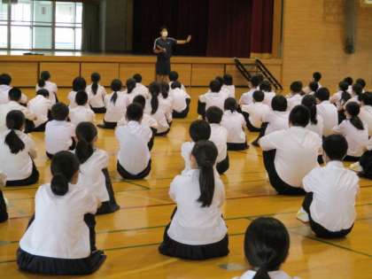本日5限、よりよい学年・学級生活に向けて、学年集会を開きました。ここ数日の様子を受けて、「生活」「部活動」「授業」について、各担当から話をしました。