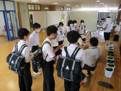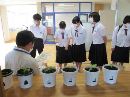 「メロンのお世話係」の生徒は、先生からメロンの育て方の説明を聞き、これから各教室で栽培します。収穫時期が楽しみですね!