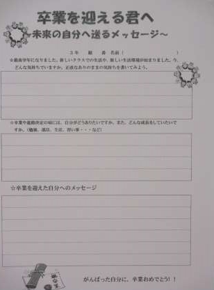 道徳の時間に、卒業時に送る「自分への手紙」を書きました。