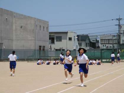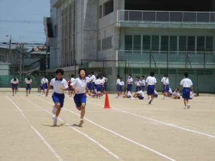 保健体育では、グラウンドで50M走の計測を行いました。「速くなった」「遅くなった」「休校が続き、体力落ちてる」と話している生徒もいました。