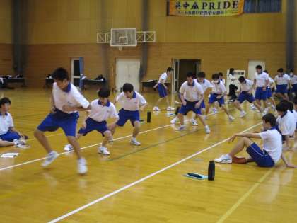 スポーツテストの種目である「反復横跳び」をしています。前年度より1回でも多く跳ぼうと必死です。さて、記録更新できたかな?