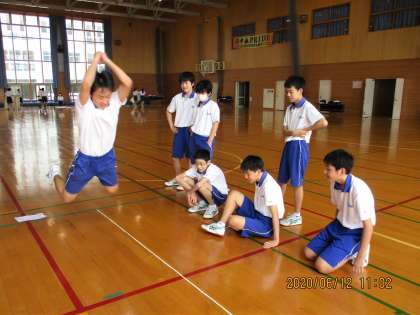 多くの時間、自席での着席を余儀なくされている毎日。そんな中で保健体育の授業は、思いっきり体を動かすことができる貴重な時間。種目によってはマスクを外すことができ、生徒たちも伸び伸びと活動しています。体育館では、スポーツテストを行っています。