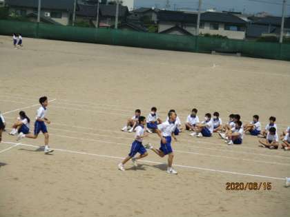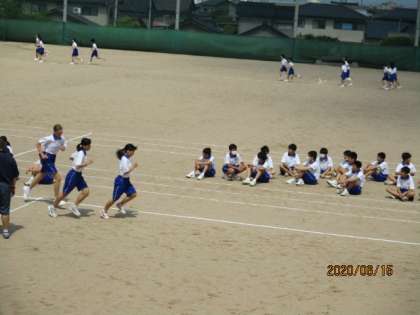 保健体育では、スポーツテストの種目の一つの持久走の計測をしました。男子は1500m、女子は800m走りきりました。