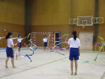 下:新体操=リボンの練習を一緒にトライしました。