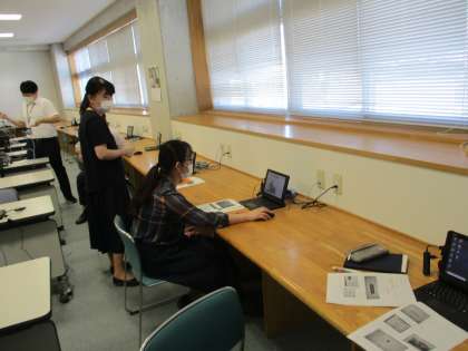 コロナウィルス感染症の影響で、学校関係の校外研修の一部はオンラインシステムを活用して実施しています。今後も活用するシステムについて、情報主任を講師として、先生たちで研修しました。