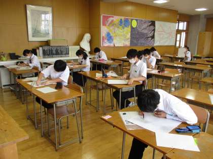 (写真下)美術の授業
