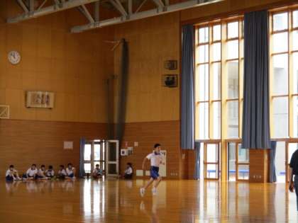 保健体育では、スポーツテストの種目の一つのシャトルランを行いました。一定の時間内に20mを走り抜ける種目です。回数が増えるごとに時間が短くなり、だんだん人数が少なくなってしまいます。1組のトップは、男子114回、女子91回でした。