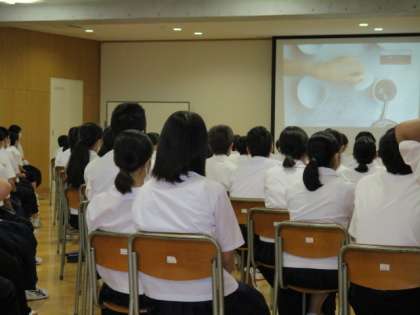 今日の総合的な学習の時間は、趣味であるフラダンスの教えから、仕事へ新しい考えを生み出した女性のDVDを視聴しました。来週からは、各学級で「仕事の裏側」を特集したDVDを視聴する予定です。