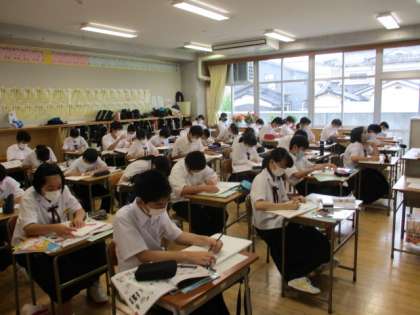 4組では鉛筆を使って、色の濃淡を活用して立体を描く練習をしました。いろいろな描画の基本となる技術です。