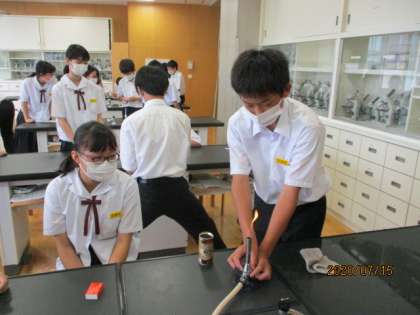 7月15日(水)1学年:理科実験(ガスバーナーの使い方)