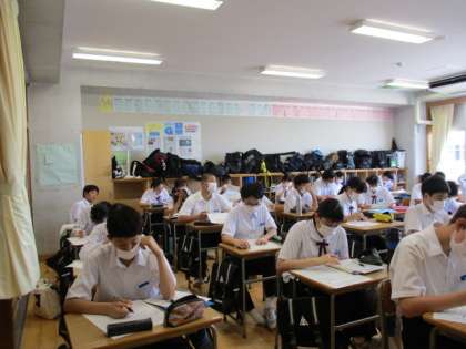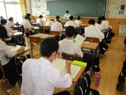 本日、8月3日(月)〜5日(水)の3日間で行われる1学期末考査の範囲表を配布しました。