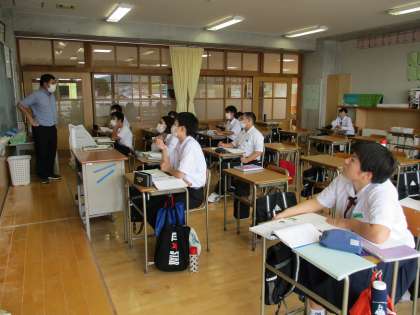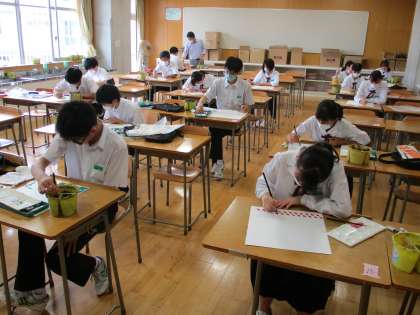 最近は日中の気温もかなり高く、廊下はとても暑く感じられます。一方、教室は冷房が入っているため、涼しく、学習に集中できる環境です。写真は美術と数学の授業の様子です。美術室が2つあるため、半分の人数に分かれての授業。そのため、美術も数学と同じように少人数授業を行っています。