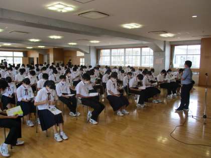 明後日から夏休みですが、生活、学習面で気を付けてほしいことを学年集会で伝えました。