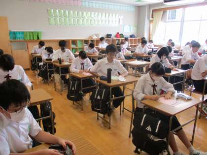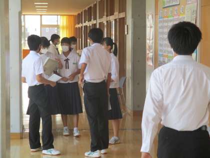 また、学年別スポーツ大会のスローガンを募集し、競技等のアンケートをとりました。暑い中、実行委員や団リーダーが意欲的にクラスをまわり、協力をもとめていました。