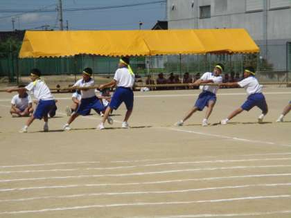 2年生の綱引きは男女別に行います。本日は練習のみで、当日が勝負本番となります。