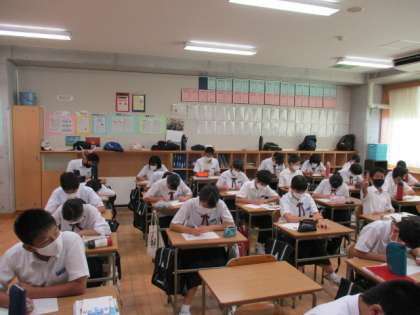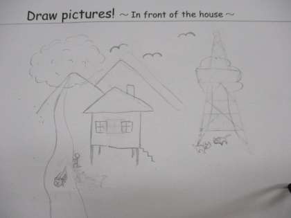 英語では、ALTの先生に来てもらい、There is / are の文法の復習を行いました。Is there a post office near here? Yes, there is. / No, there isn't. で情報交換を行ったり、ALTの先生の話す英語を聞き取り、それをイラストに描いたりしました。また、英文を読み、宝箱探しのゲームをしました。生徒たちは皆、積極的に活動し、楽しい時間となりました。
