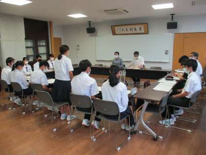 この行事の目的は、年齢の近い大学生との交流を通していろいろな価値観に接すること、将来に目を向ける機会とし今後の進路選択につなげることです。運営は学年生徒会のメンバーになりますので、今日の事前打合せでは真剣に話を聞き意欲的に臨んでいました。